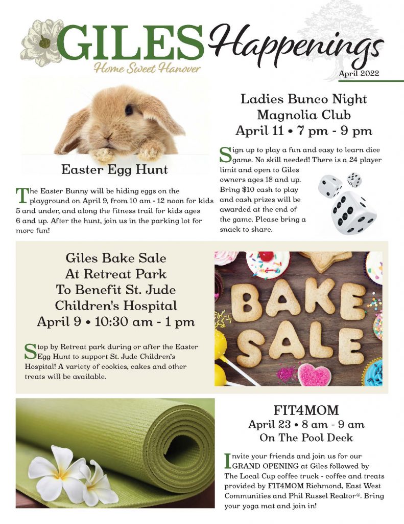 Take a look at Giles’ April Events Calendar.